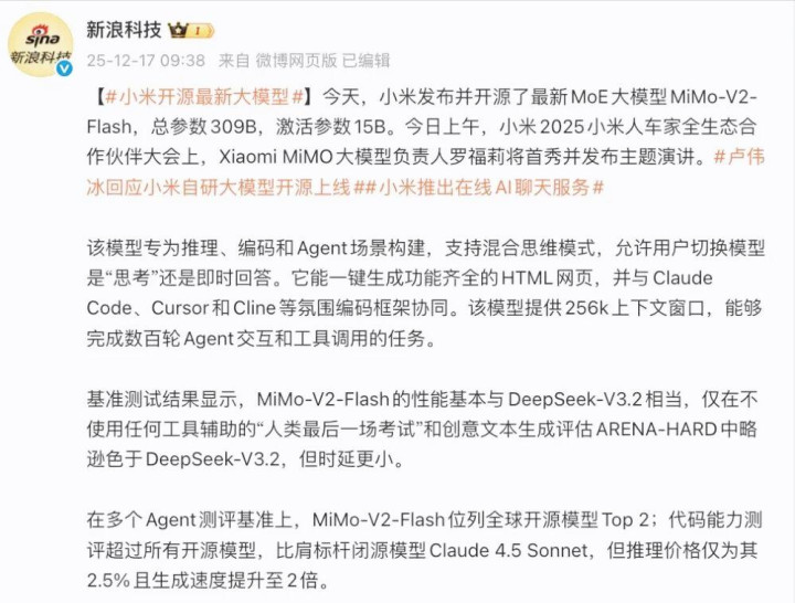 咱们先看看小米最近在AI圈丢下的这颗重磅炸弹,也就是刚发布的MiMo-V2-Flash大模型。